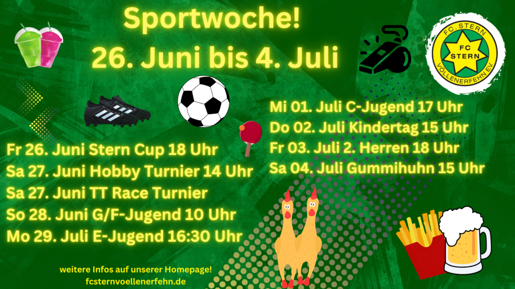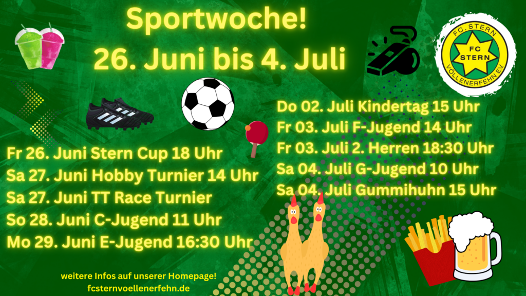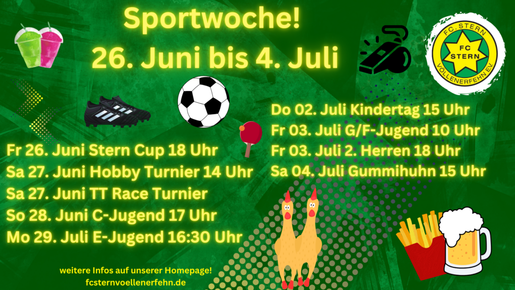 Entdecke die sportliche Vielfalt und Begeisterung, die den FC Stern Völlenerfehn auszeichnet. Egal ob Fußball, Tischtennis, Handball oder andere Sparten – bei uns findest du die Leidenschaft, die dich antreibt.